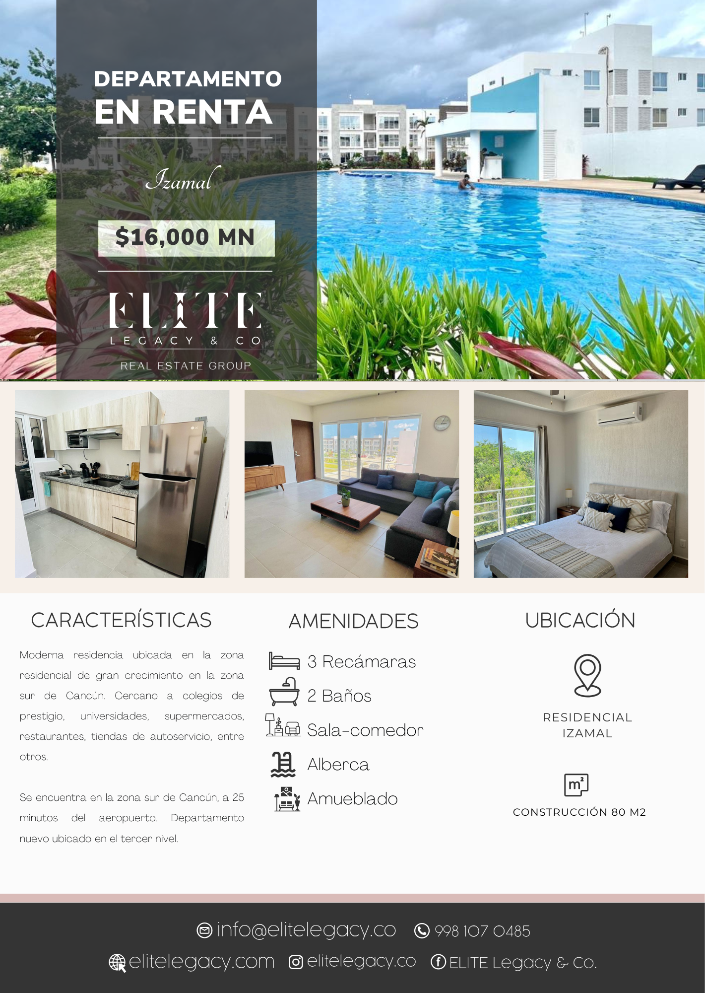 Se encuentra en la zona sur de Cancún, a 25 minutos del aeropuerto. Departamento nuevo ubicado en el tercer nivel.